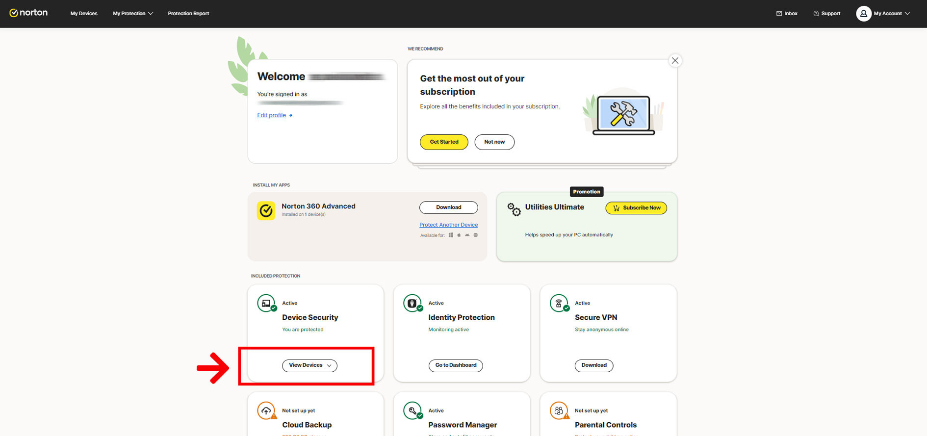 步驟 1 請至 www.manage.norton.com 並登入您的帳戶。